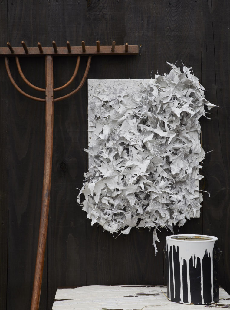 “I believe in utilizing industrial materials to create beautiful artwork that blurs the lines between organic and inorganic so that they seamlessly flow together,” Barnett says. “I feel it is equally important to highlight the integrity of the existing space while salvaging original components and rethinking them in a new and innovative manner. White paint symbolizes purity, giving a fresh outlook to discarded materials and therefore creating a symbolic item from trash.”